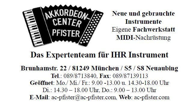 Sie sind hier: Startseite > Sponsoren SponsorenDie Accordeonissimos aus Poing haben eine lange und erfolgreiche Tradition. Um diese auch zukünftig aktiv gestalten zu können, benötigen wir starke Partner an unserer Seite. Daher sagen wir unseren langjährigen, erfolgreichen Förderern, Partnern und Sponsoren aus dem Landkreis Ebersberg herzlichen Dank.